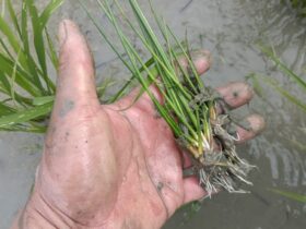 通称大坪大の田んぼ。今年は稲の生育中は、水管理とザリガニなどの生き物たちの除草効果などで田の草取りせずに済み、安心していたのですが、田植え直後にザリガニ被害にあった場所が、稲がないため水を落とした段階で、ヒエが出始め、稲… -