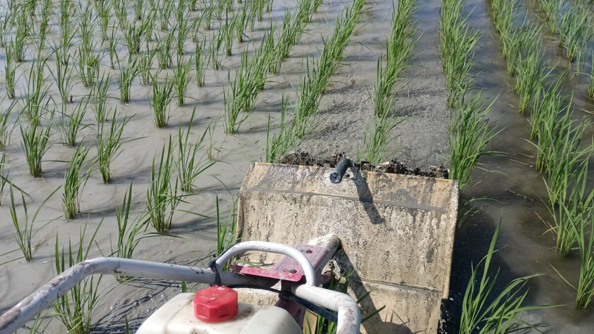 稲の根が横に張っていたものを、水を切る事によって地を乾かし根を下方向へ向かわせます。