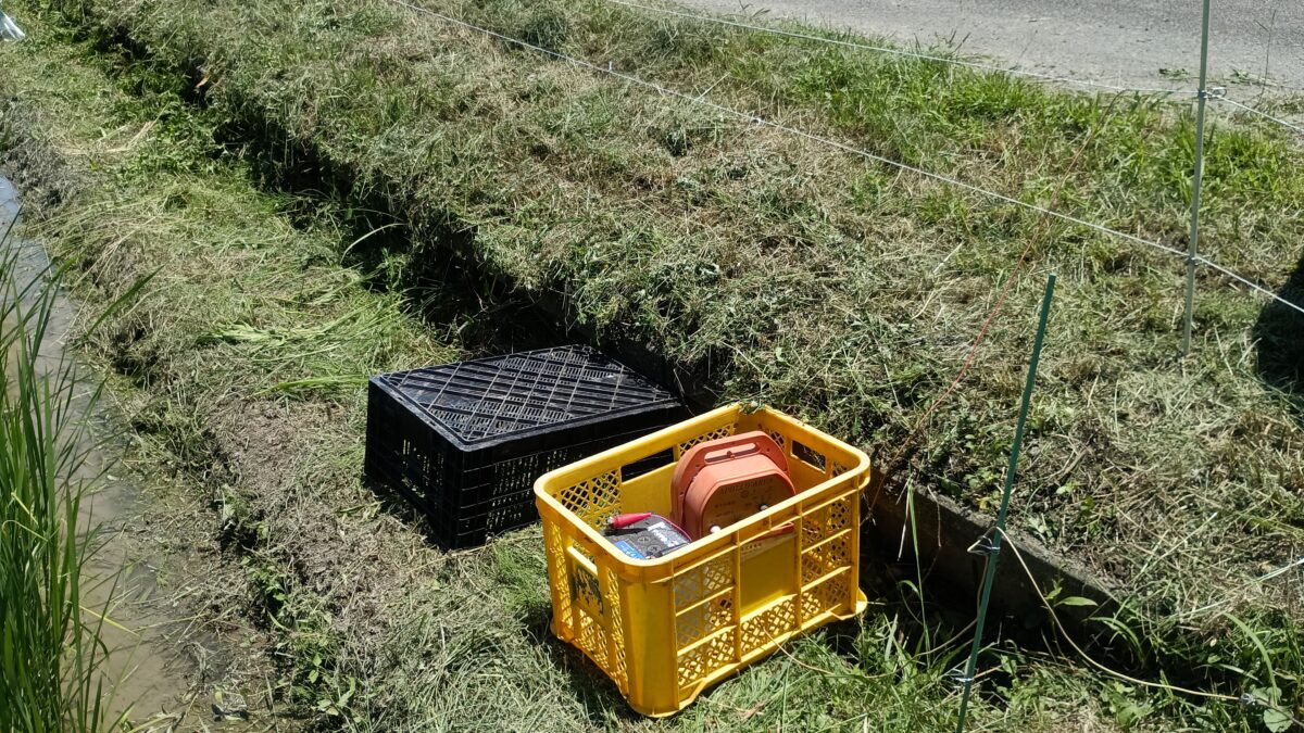 簡単に電柵張りなんて言うけれど、田んぼの草を刈ってからの作業。