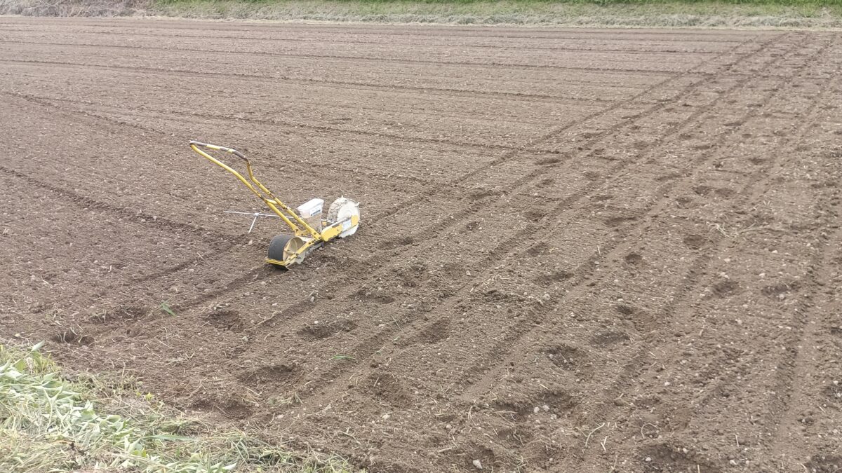最後の雨が降ってから、畑を耕し、水分が十分に土中に残っている時に播くと発芽が揃うし、草もでにゃい。