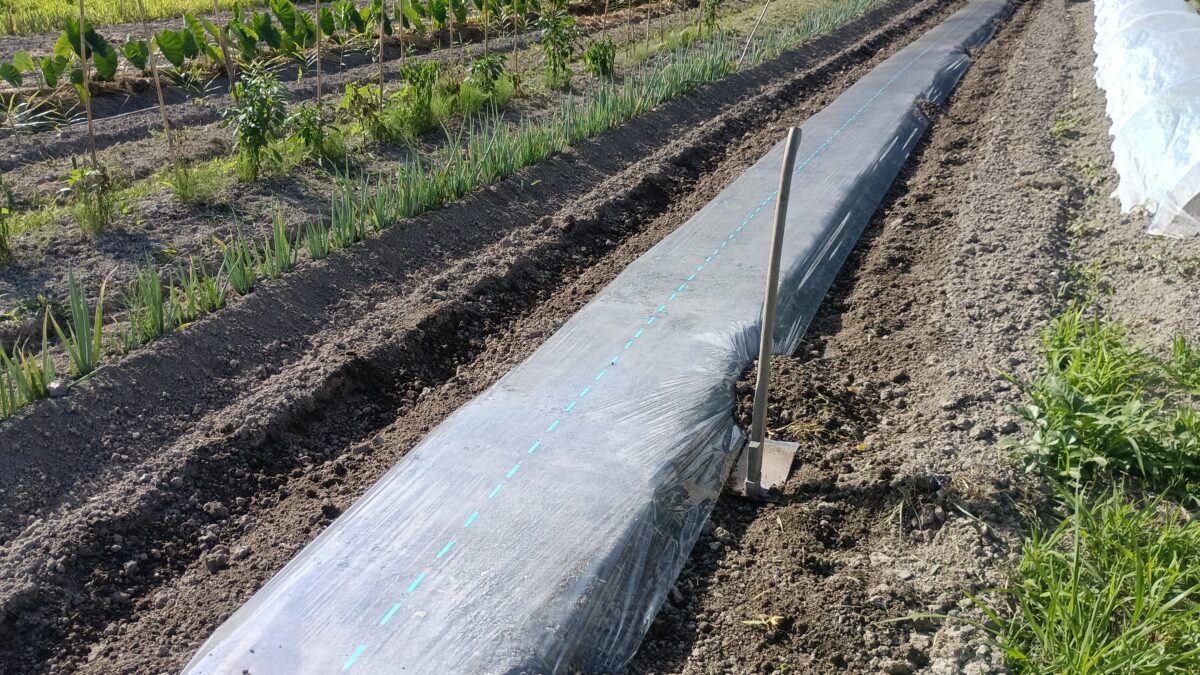 透明マルチを張って苗床を高温にします。